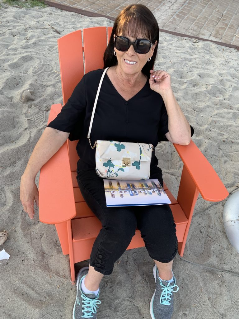 Felicia found a good seat to sit and watch people go by on the Embarcadero