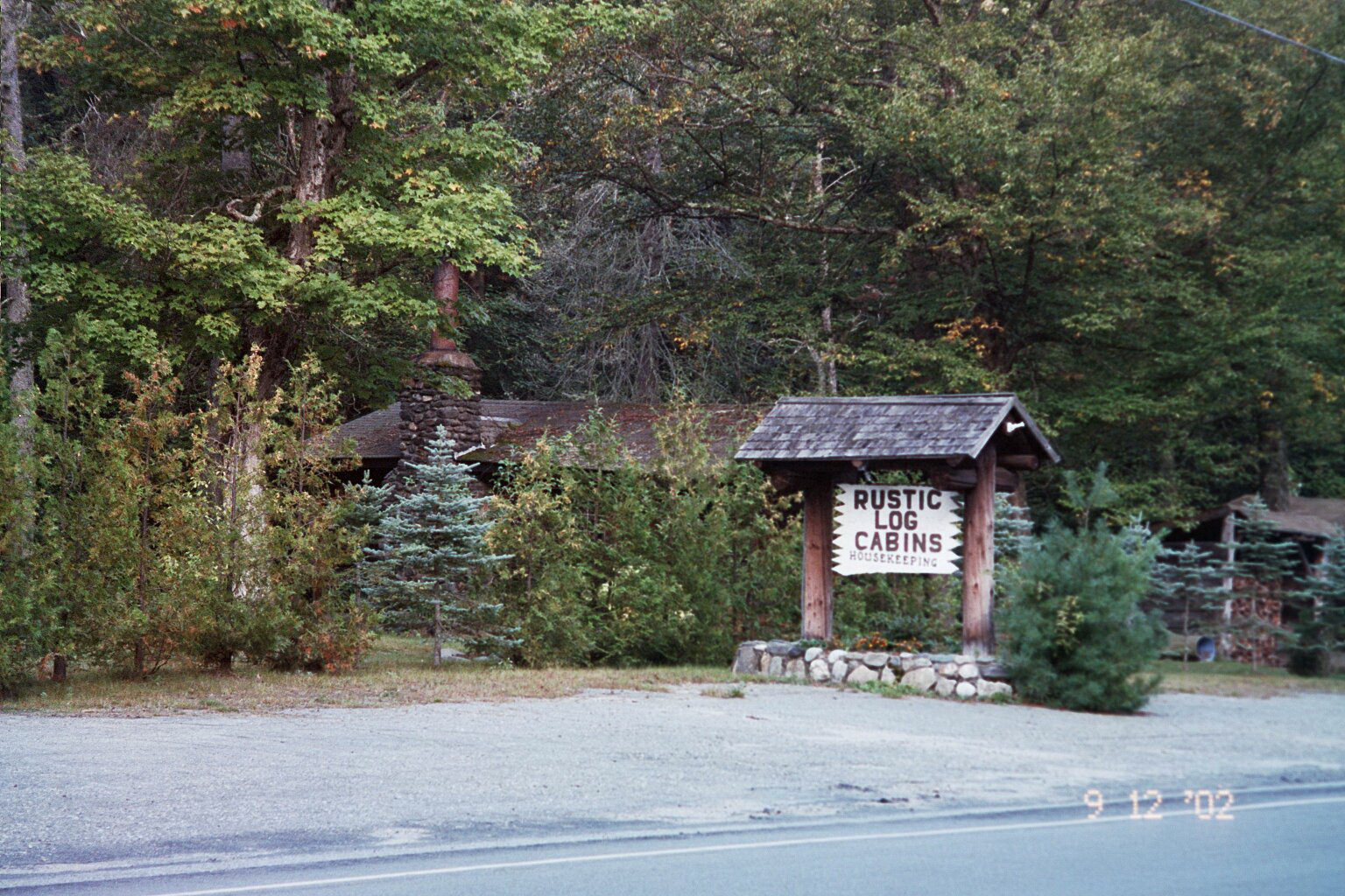 We stayed at the Rustic Log Cabins in New Hampshire’s White Mountains. Nice & clean and hidden in the trees.