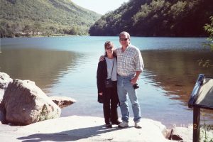 New Hampshire’s state symbol, the Old Man of the Mountains. This rock formation fell off a year after we visited, we saw it just in time. I told Larry not to stand on top of it!