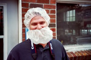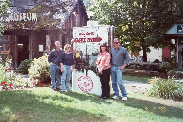 In Vermont we went to The Maple Grove Syrup Factory and took a tour, ate Maple candy and bought a lot of Maple Syrup. Larry had to cover that patchy beard before he could go into the Syrup Factory – He won’t ever be able to live down these pictures.