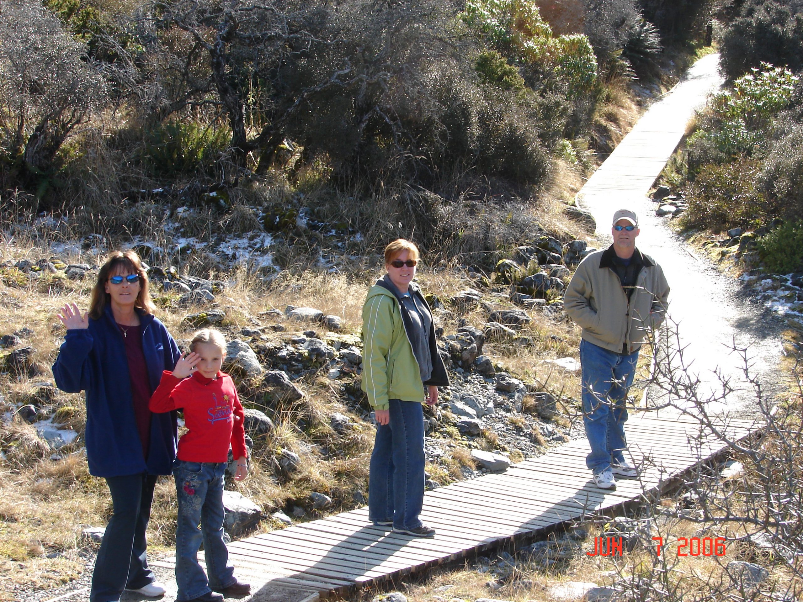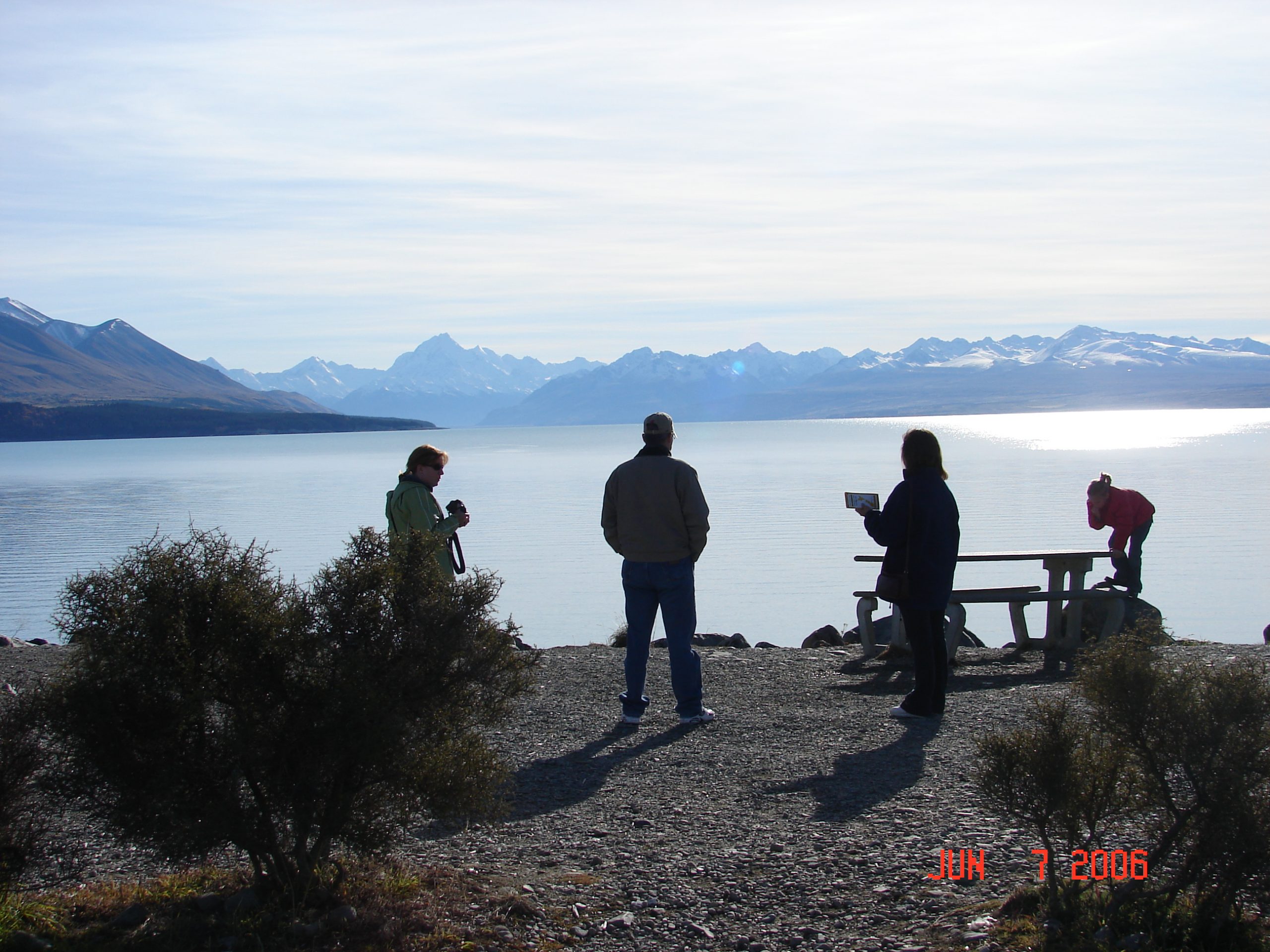 We had a long drive from Te Anau to the town of Lake Tekapo. We stopped for about 3 hours in Queenstown at Deer Park and got to Lake Tekapo late in the day. We stayed in a cabin at Lake Tekapo and I remember that it quite cold and we went into town and got fish and chips wrapped in newspaper for our dinner. I guess the big cold lake, the high altitude and the glaciers around town kept it feeling cold.