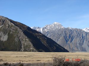 From Lake Tekapo, we drove to Mount Cook and to the foot of the Tasman Glacier. We did a lot of hiking down the valley floor where the glacier was 10,000 years ago. We saw beautiful mountains, valleys, lakes with ice and Mount Cook from a very close viewpoint.