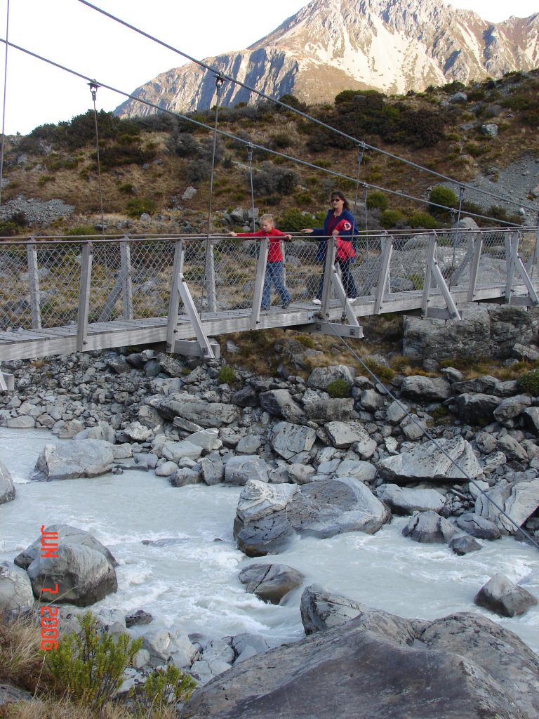 We went across a swinging bridge that crossed over the ice melt. It was pretty high up and not too steady. Kendra got scared but made it across.