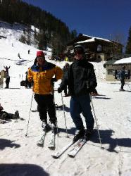 When we took this photo, Felicia, Larry and Steve were all crippled and hobbling around at the bottom mountain. We skied both sides