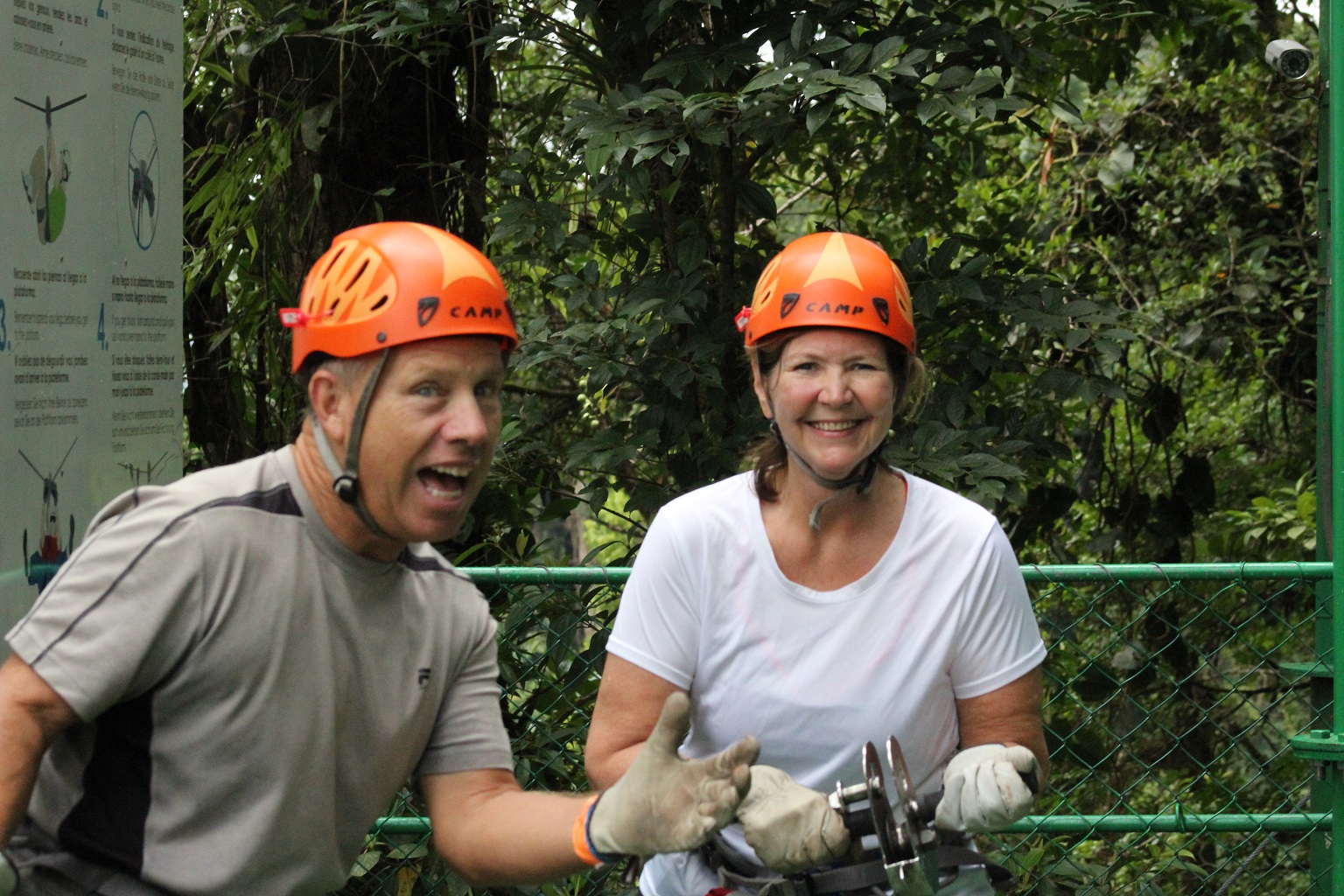 In 2016 we travelled across a deep valley in Costa Rica by zip-line